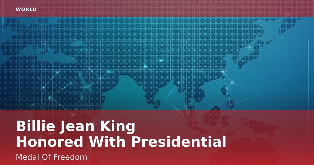 Tennis legend Billie Jean King was awarded the Presidential Medal of Freedom on April 5, 2026, in a ceremony at the White House. The honor recognizes her groundbreaking contributions to sports and her lifelong advocacy for gender equality and social justice. President [Name] praised King as "a trailblazer who reshaped the world both on and off the court."